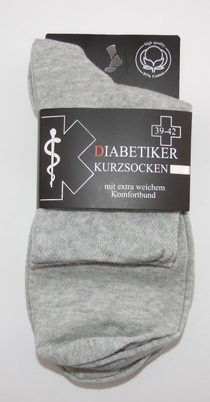 Diese angenehm weichen und aus fast reiner Baumwolle (97%) hergestellten Diabetiker Kurzsocken für Herren bieten wir im 3er Pack an. Die Schafthöhe beträgt ca. 14 cm Sie tragen 100% Baumwolle auf der Haut! Corespun; hier liegt bei der Herstellung des Fadens der Lycrafaden in der Mitte und die Baumwolle wird beim Spinnen umwunden; so tragen Sie 100% Natur auf der Haut aber die Faser gibt auch noch gut nach! mit echter Ferse und handgekettelter Spitze, optimal auch für die Diabetiker und für Personen, die im Zehenbereich empfindlich reagieren.