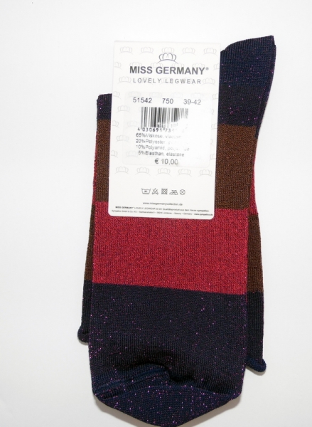 Die Blockringelfarben sind: marine, braun, dunkelrot mit weinroten Glitzer