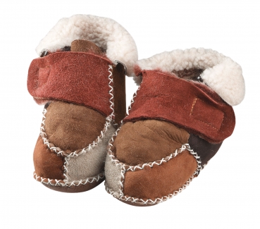 Durch den Klettverschluß können Sie die Lammfellschuhe leichter an und ausziehen. Gern werden diese Lammfellschuhe über die Strumpfhose gezogen oder auch im Kinderwagen getragen, damit das Babyfüßchen nicht auskühlt!